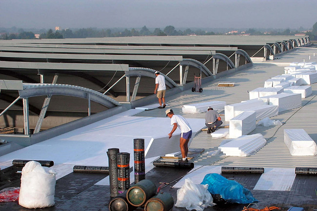 coibentazione ed impermeabilizzazione dei solaio di copertura in lamiera.