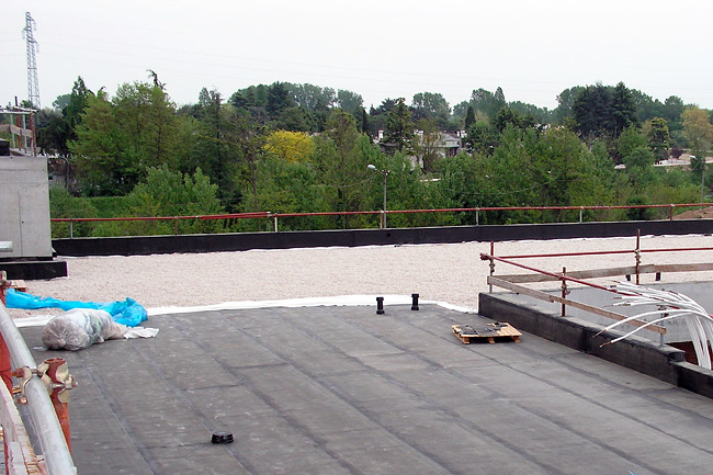 impermeabilizzazione dei solai di copertura, pedonabili e carrabili al piano terra.